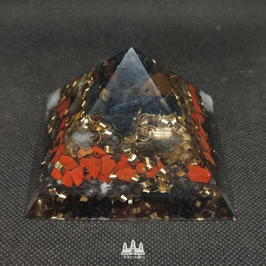 Mini Orgonite pyramidale Nombre d'or Jaspe Rouge & Oeil de tigre