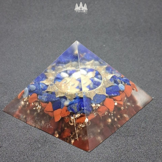 NOUVEAUTE ! Orgonite Pyramidale Symbole Bouddha, Lapis Lazuli & Jaspe Rouge