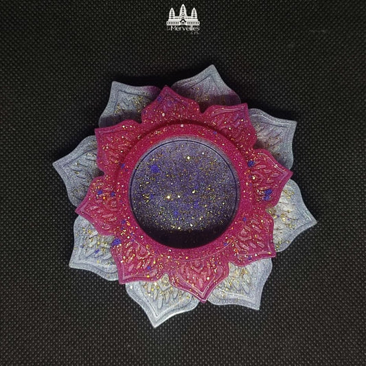 Bougeoir résine violet/ rose paillettes