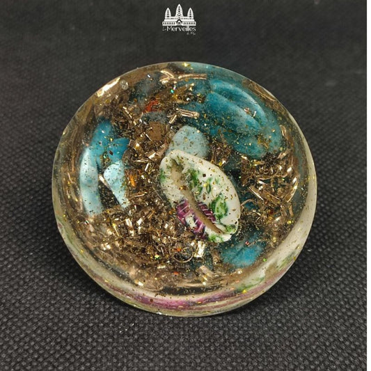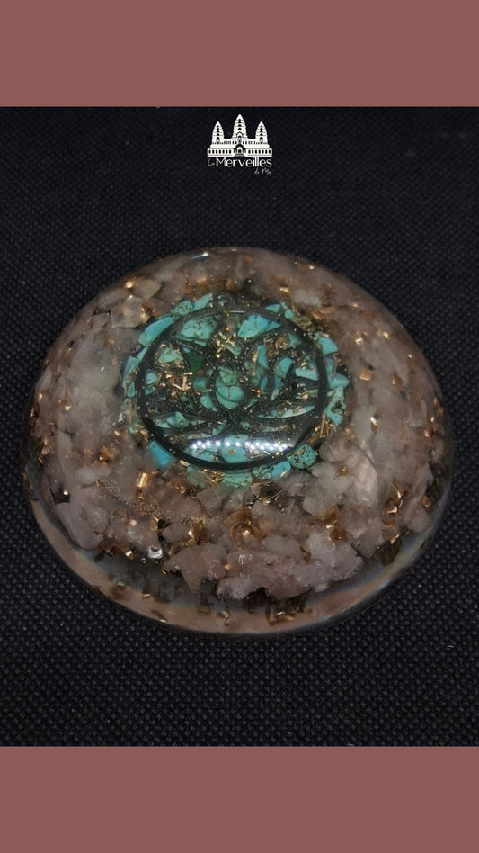 Dôme orgonite Quartz Rose & Turquoise Symbole Fleur de lotus