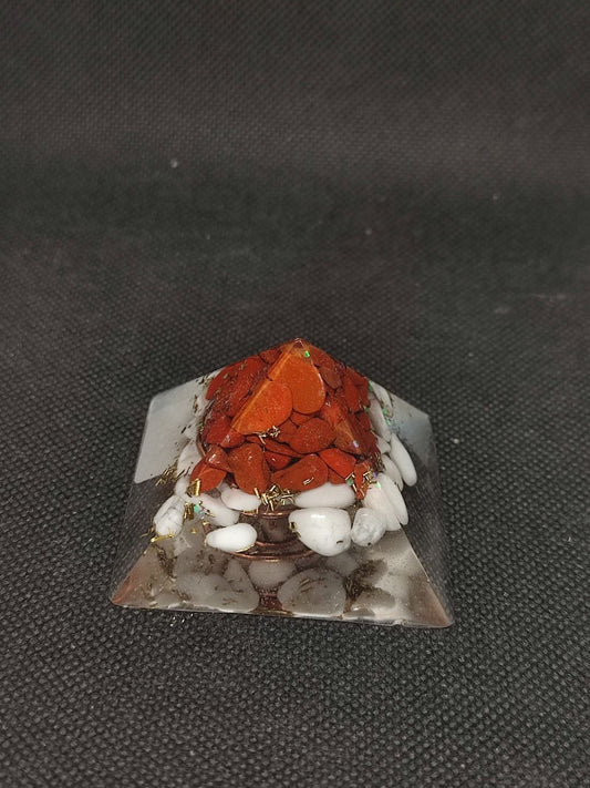Mini Orgonite Pyramidale Nombre d'Or Jaspe Rouge Howlite