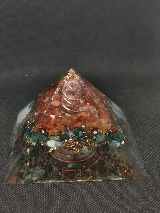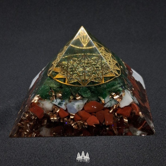 NOUVEAUTE ! Orgonite Pyramidale Pentagramme Aventurine Verte, Agate Arbre d'Inde et Jaspe rouge