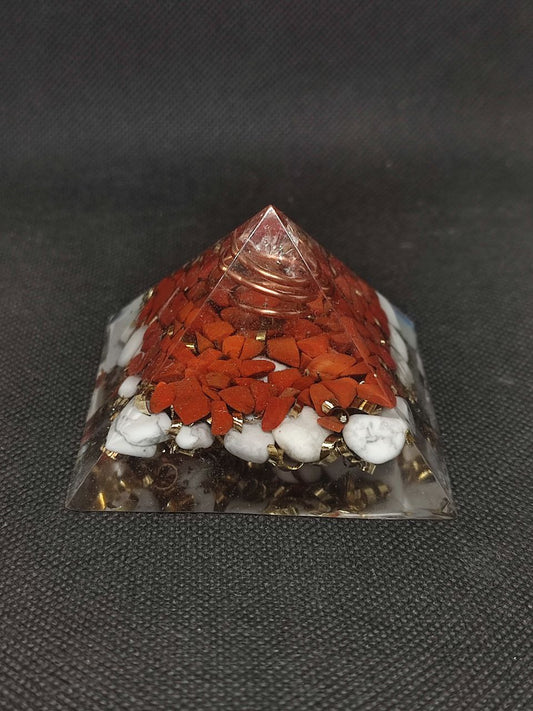 NOUVEAUTE ! Orgonite Pyramidale Cornaline & Howlite