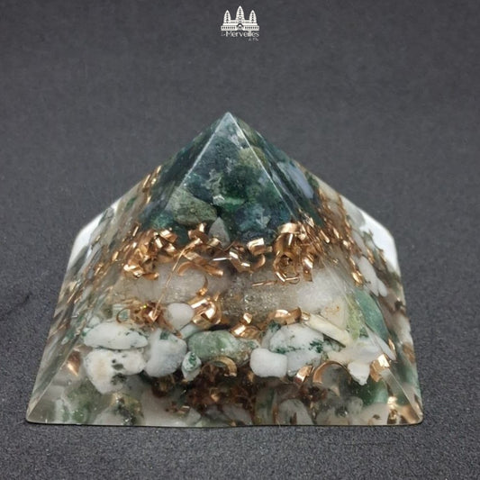 NOUVEAUTE ! Orgonite Pyramidale Agate Mousse, Citrine et Agate arbre d'Inde