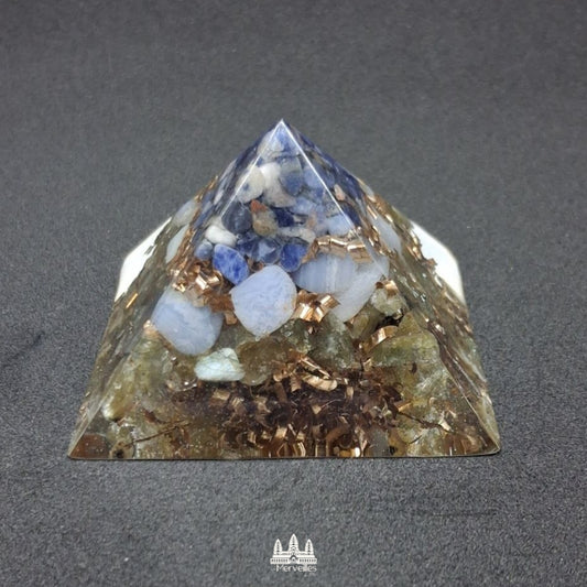 NOUVEAUTE ! Orgonite Pyramidale Sodalite, Calcédoine Bleue et Labradorite